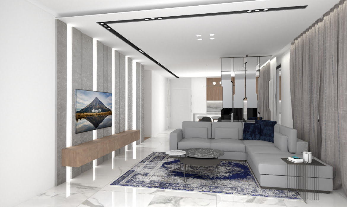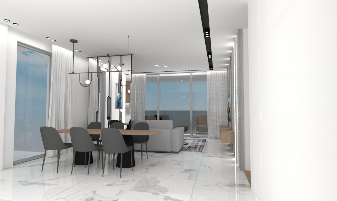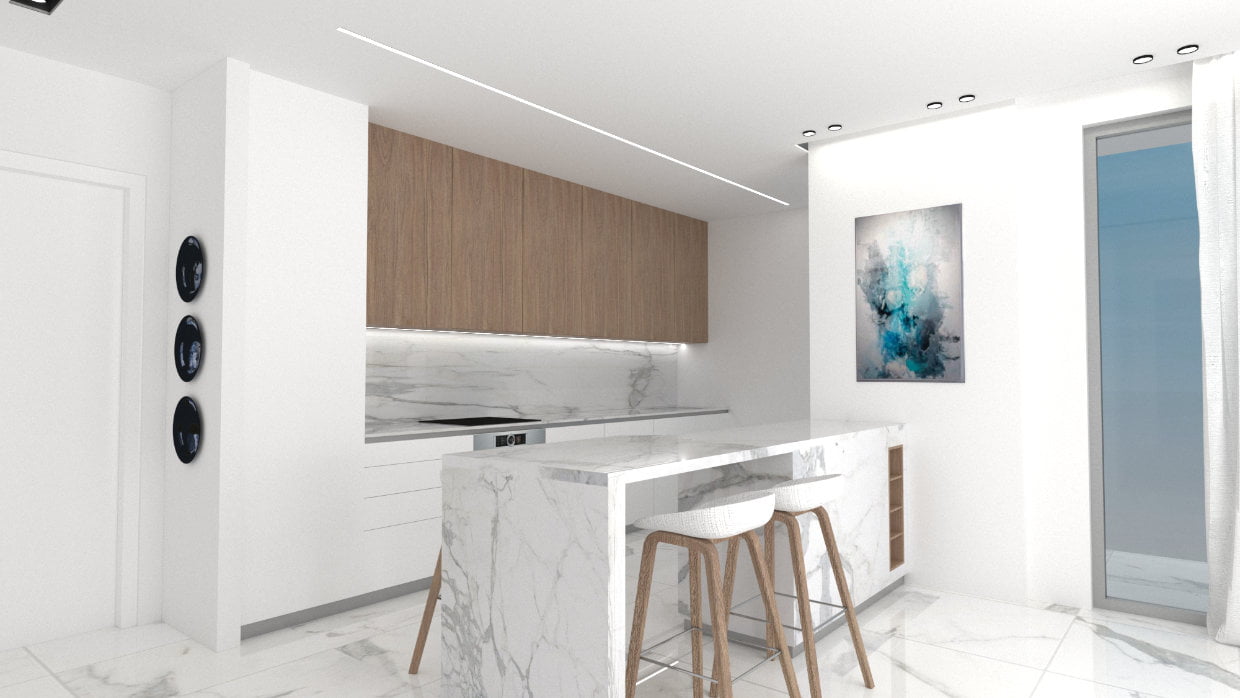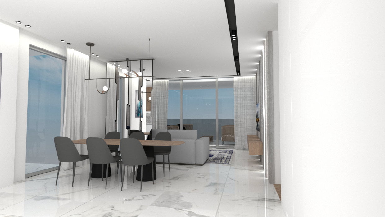 - Living / dining area with a sleek design kitchen