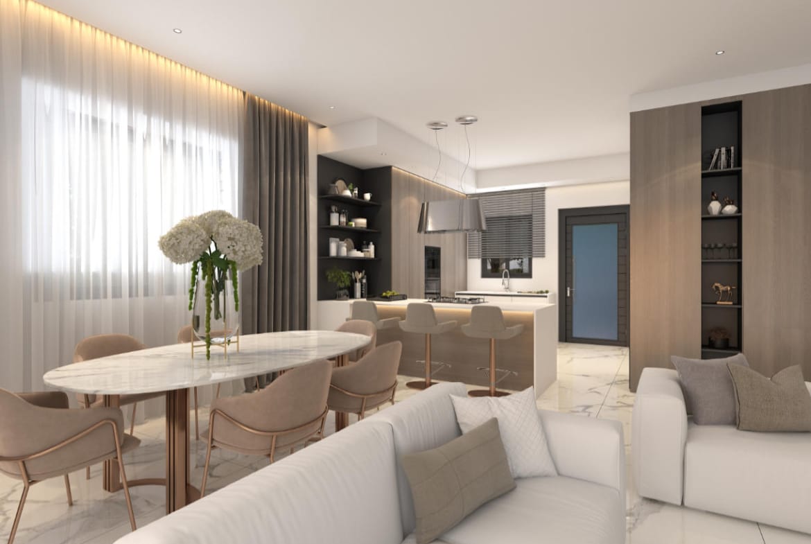 - Living and dining area with modern fitted kitchen