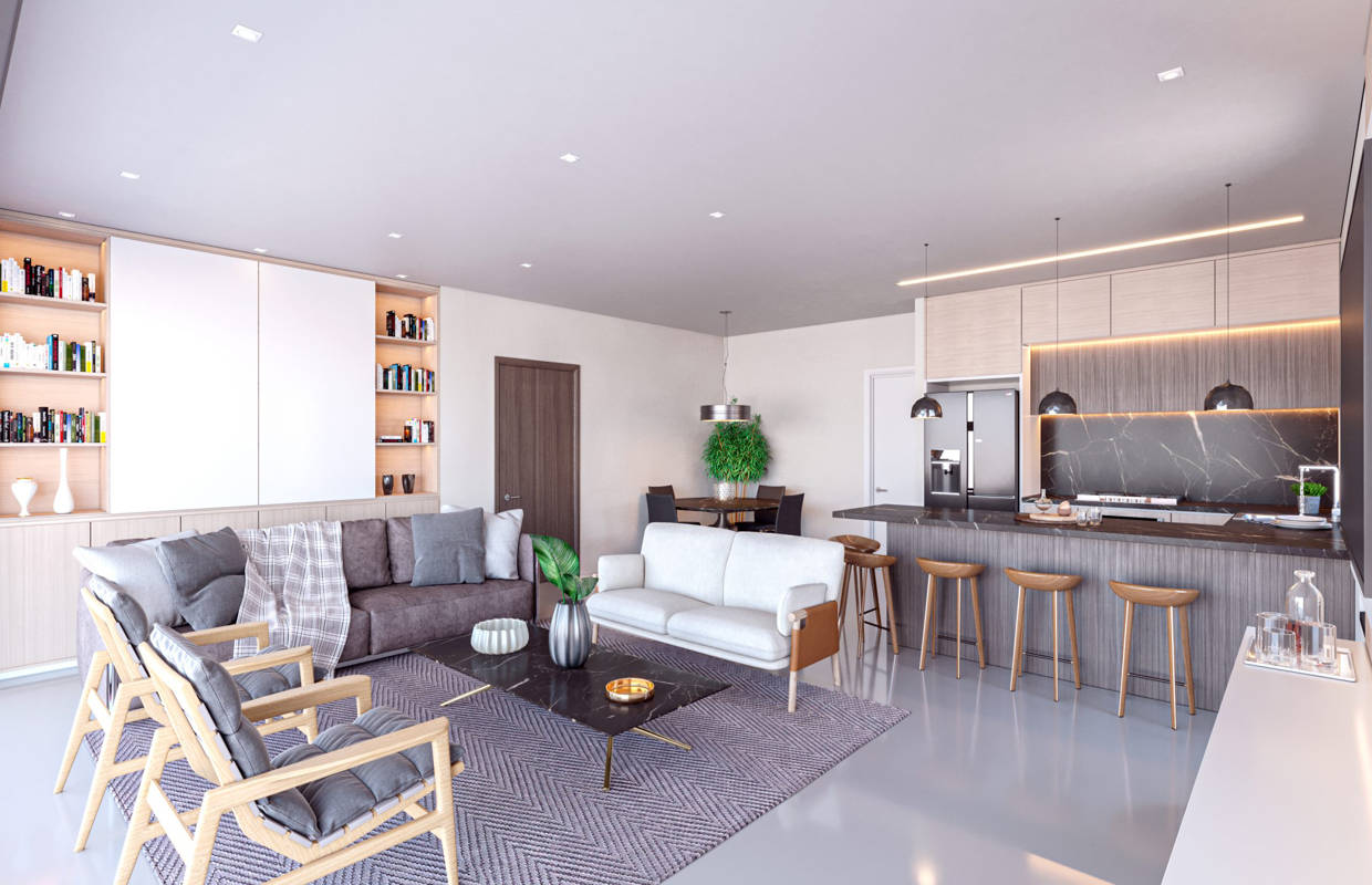 - Spacious open plan living area with kitchen