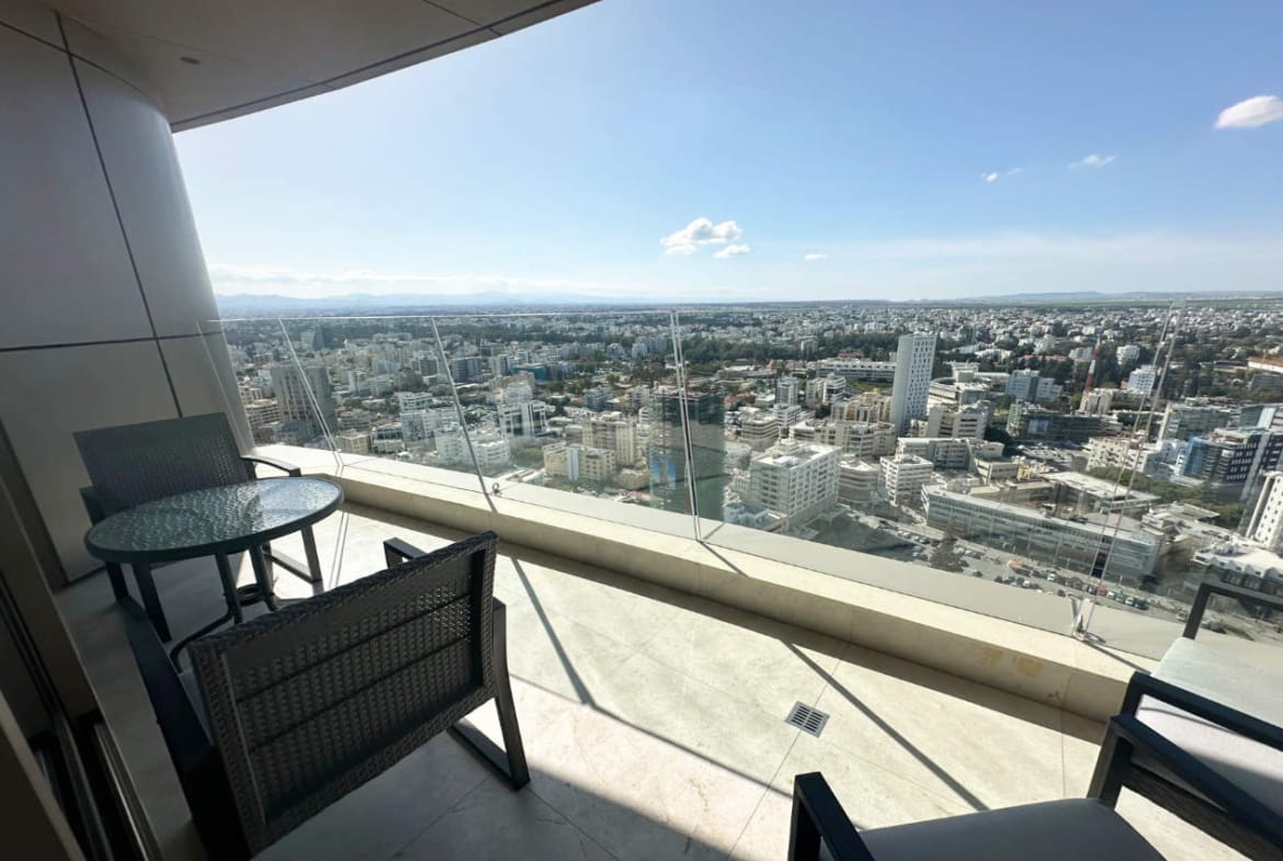 Experience premium urban living in this exceptional 2 bedroom luxury apartment for rent in the heart of Nicosia. Situated on the 30th floor of an iconic high-rise residence offering panoramic views of the capital, modern design and top tier comfort.