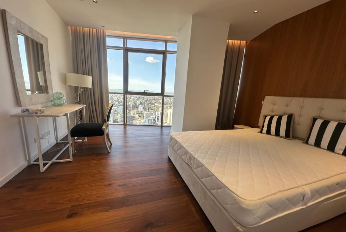 Experience premium urban living in this exceptional 2 bedroom luxury apartment for rent in the heart of Nicosia. Situated on the 30th floor of an iconic high-rise residence offering panoramic views of the capital, modern design and top tier comfort.